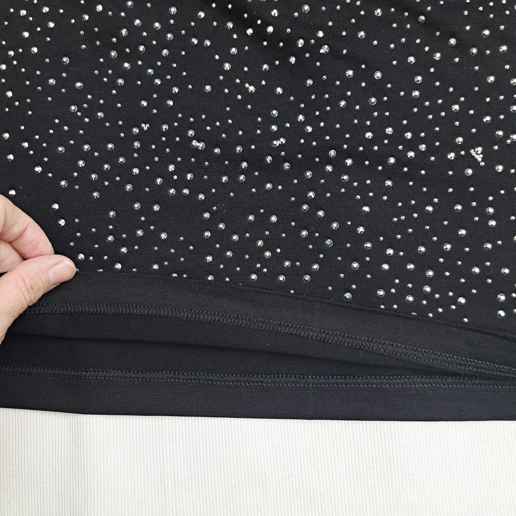 تزیین تمام سنگ روی تاپ جلوهای درخشان و خاص به آن میدهد و این مدل را به گزینهای ایدهآل برای مهمانی، دورهمی و مجالس رسمی تبدیل میکند. رنگ مشکی کلاسیک بهراحتی با انواع شلوار، دامن و اکسسوری ست میشود و امکان ساخت استایلهای متنوع را فراهم میکند.