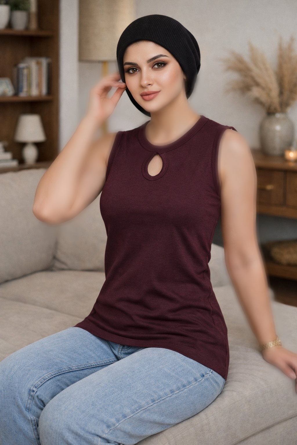 تاپ زنانه پنبه فانریپ با یقه اشکی علاوه بر ظاهری شیک، گرمای ملایمی ایجاد میکند و گزینهای عالی برای زیر مانتو یا ژاکت است.