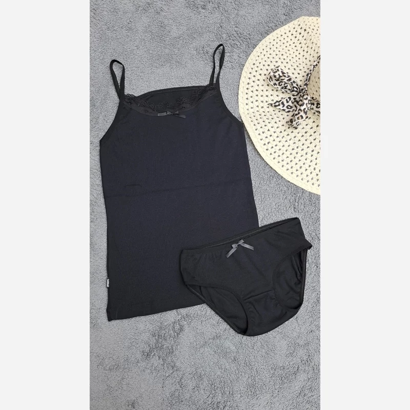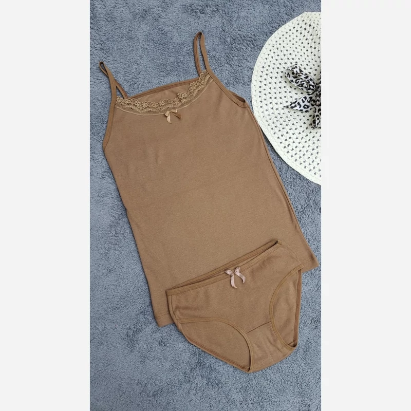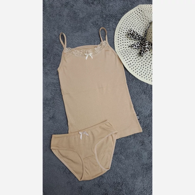 ست تاپ بندی و شورت زنانه دخترانه گیپوردار جنس پنبه
