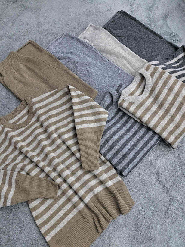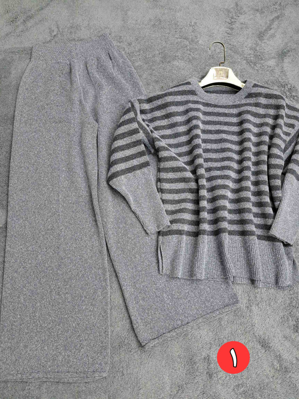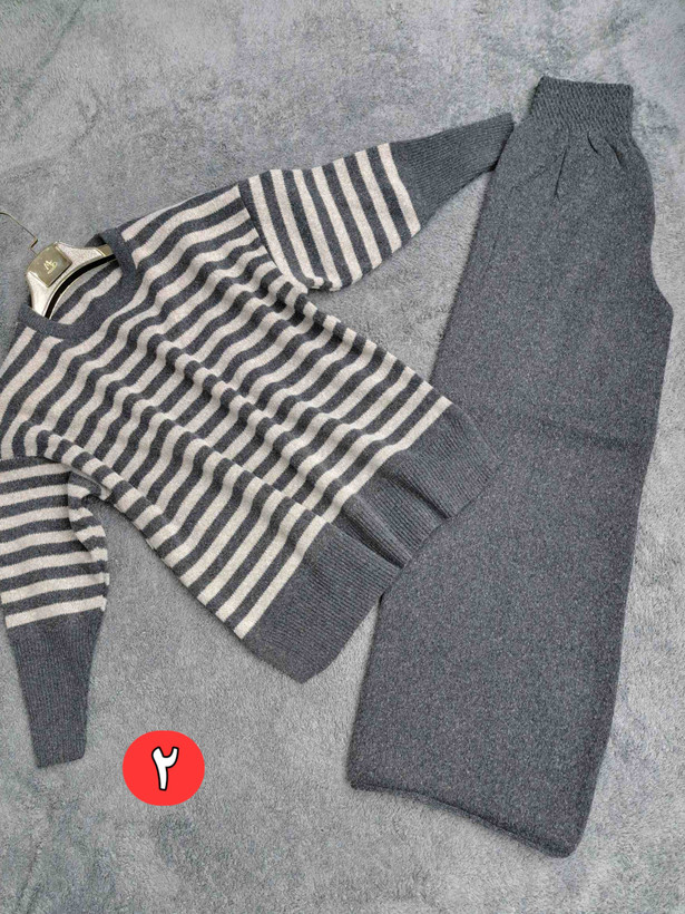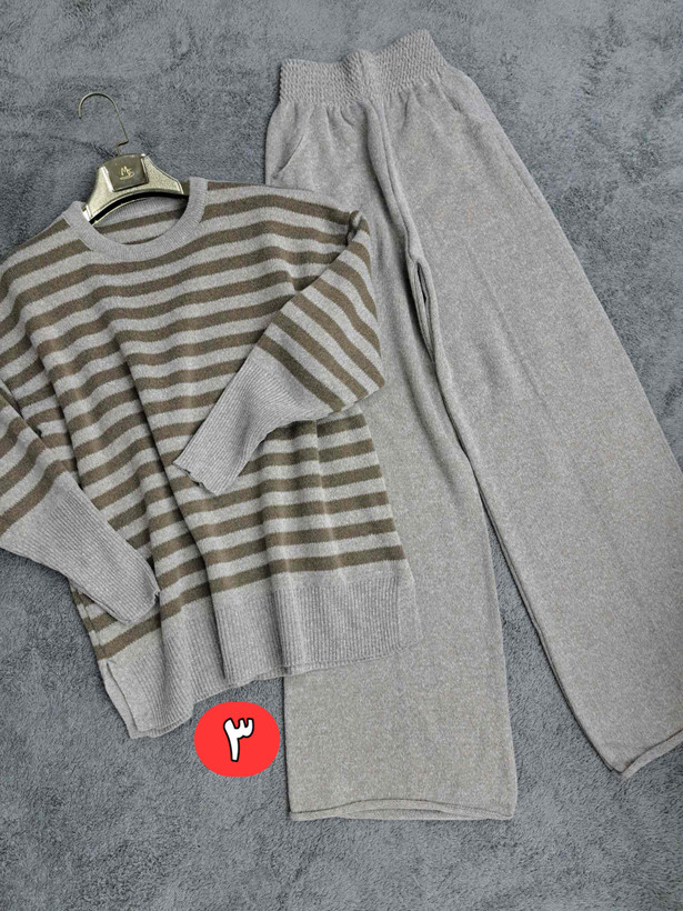 ست بافت دو تیکه بلوز و شلوار جیب دار آستین کشباف زنانه