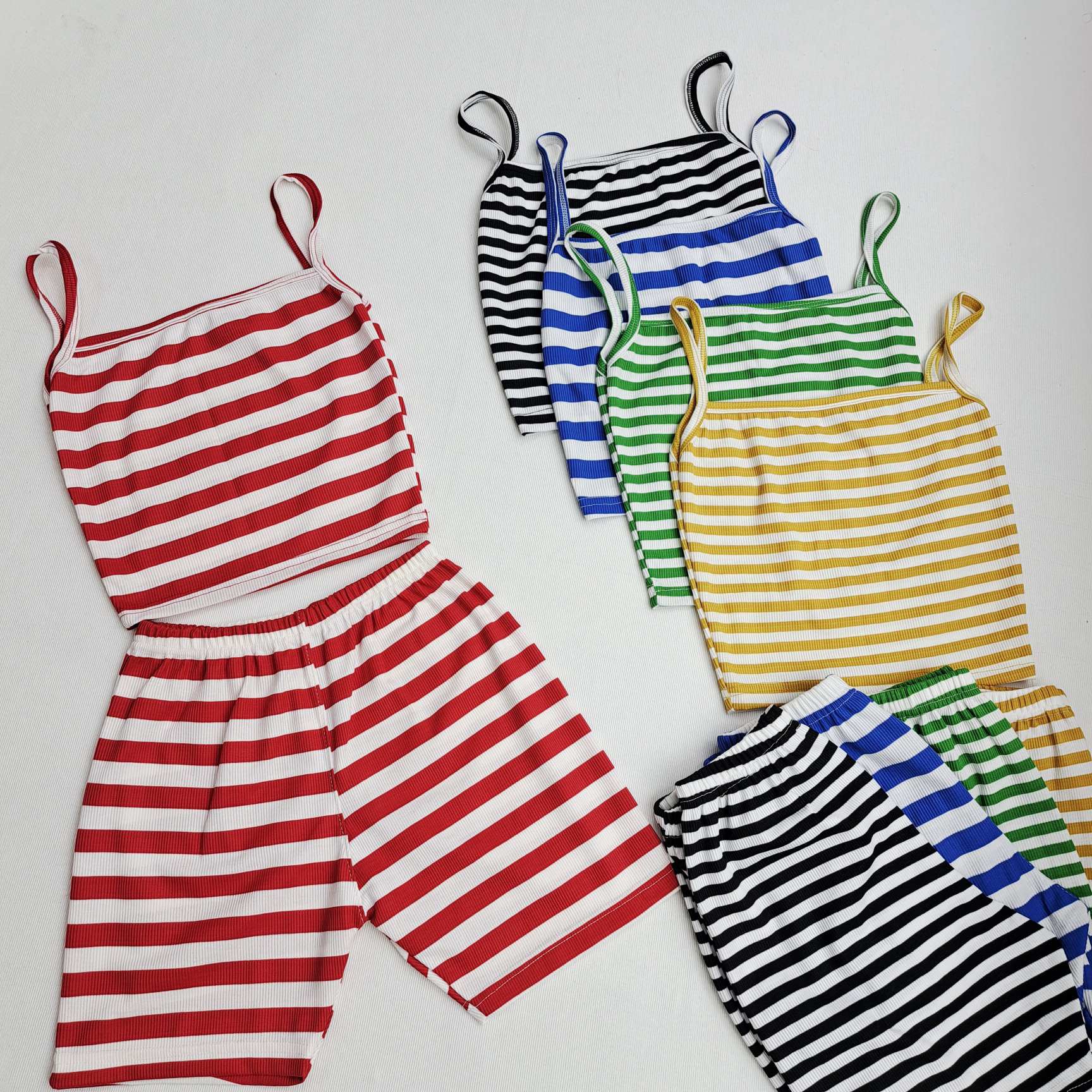 ناموجودست تاپ و شلوارک بندی راه راه کبریتی دخترانه زنانه